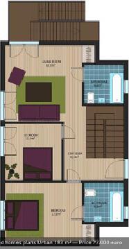 此款木屋設(shè)計為兩層樓,木房屋總面積168米²;一樓房子有寬敞的陽臺和三個浴室。房子套件包括屋頂;二樓包括外部和內(nèi)部的墻壁,木制的雙層玻璃窗,門和樓梯;房頂蓋別墅專用玻纖瓦…